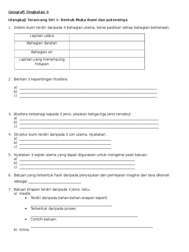 Sistem bumi terdiri-- atmosfera zon udara - litosfera zon daratan - hidrosfera zon air - biosfera zon hidupan. Baca versi flipbook dari Geografi Tingkatan 4. Contoh soalan perniagaan tingkatan 4 kertas 1 rim contoh soalan perniagaan tingkatan 4 kertas 1 pendidikan.